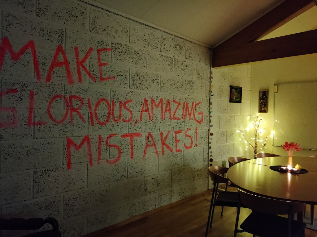 Dette skrev jeg på veggen på kontoret, med store rosa bokstaver, allerede første uka på jobb. Noen mistakes har helt klart vært mer glorious enn andre – men jeg håper og tror, at jeg har lært noe av hver eneste en av dem. Og så synes jeg at det er noe av det viktigste vi kan formidle i skolen.